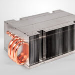 Skived fins are made with a cutting tool that peels the fins out of an extruded aluminium or copper base.